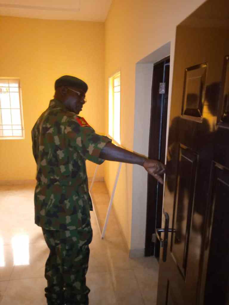 Gen Buratai was connducted round the Centre where he inspected completed works at the Command Day Sec School, trainees’ living accommodation and Army Command Children school among others.