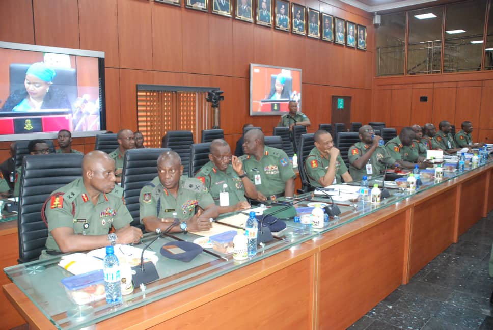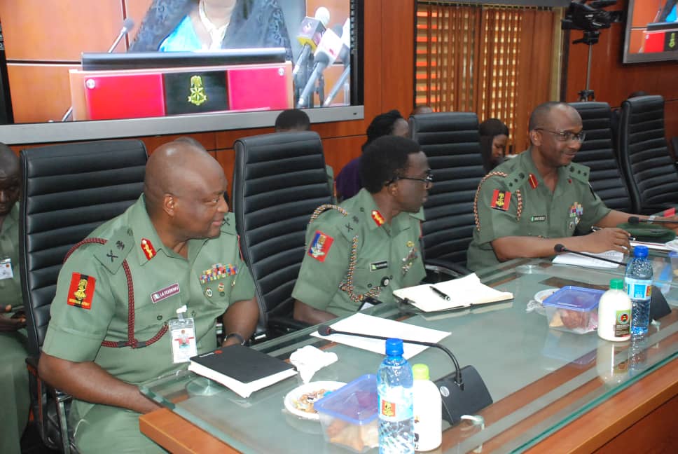 Present at the visit were the Chief of Policy and Plans, Army, Lt. Gen LO Adeosun, Chief of Training and Operation, Major Gen EO Udoh, Chief of Logistics, Major Gen Uniugbe, Chief of Standards and Evaluation, Major Gen F Azinta, Chief of Accounts and Budget, Major General Bakare, Chief of Military Intelligence, Major Gen SA Adebayo, Commandant, Army War College Nigeria, Major Gen Ofoche, Director of Plans, Major Gen BO Sawyer, and Acting Provost Marshall, Nigerian Army, Brigadier General H Ahmed.