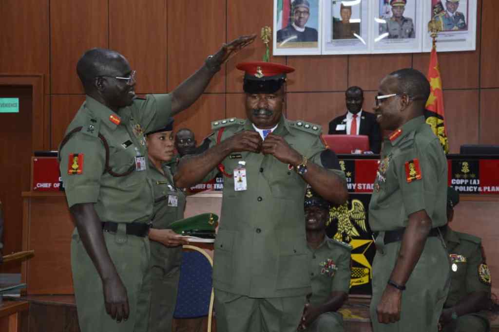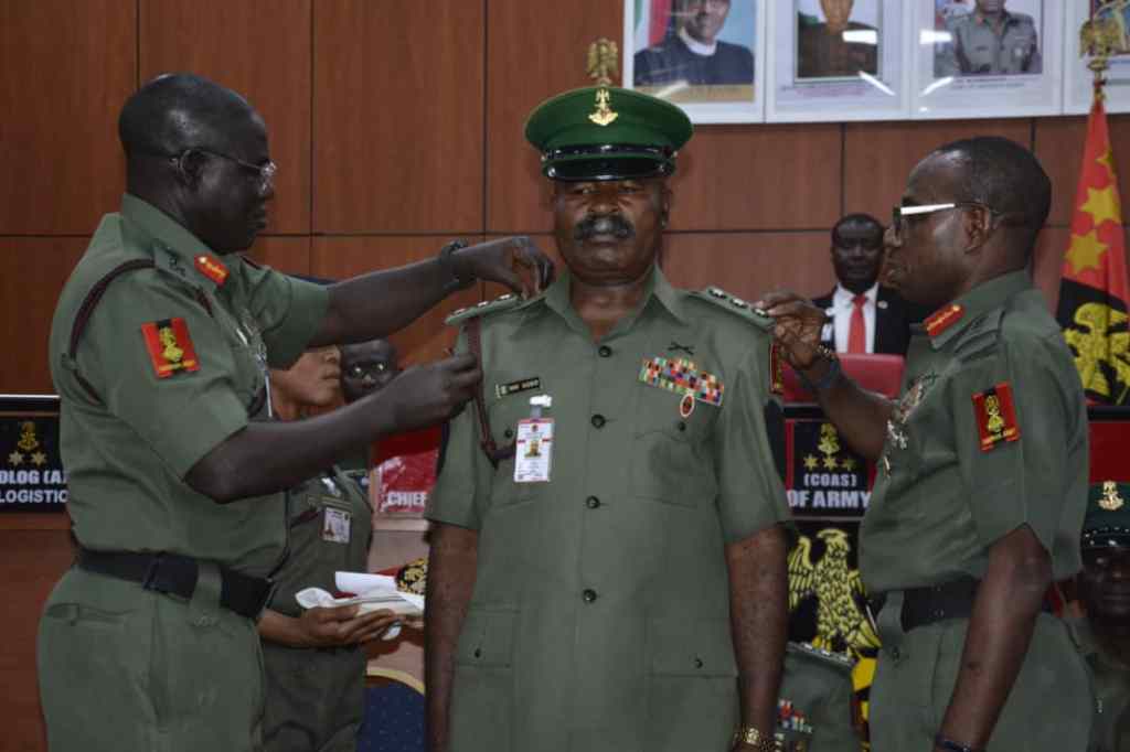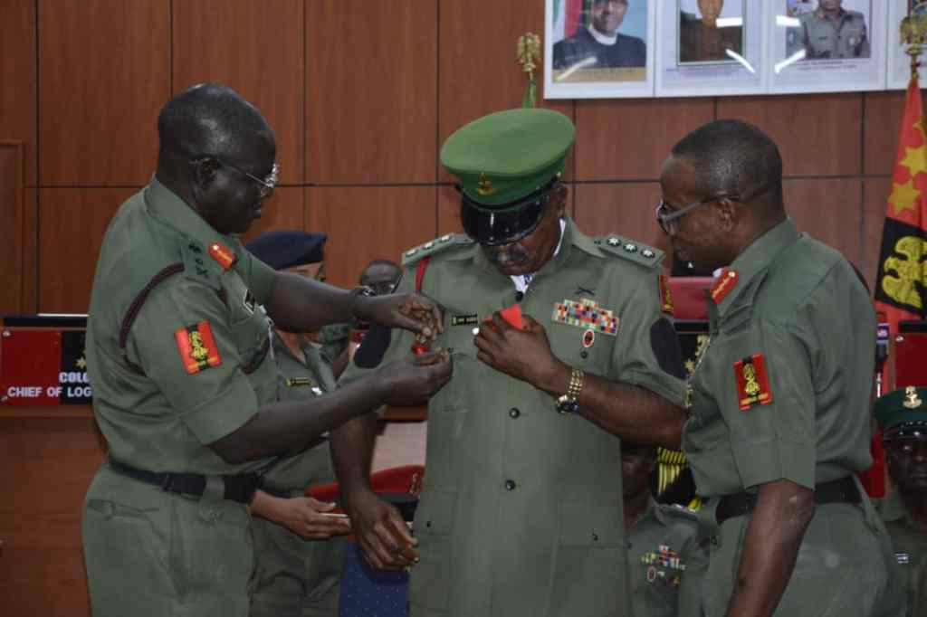 While decorating the newly promoted officers, the Chief of Army Staff (COAS) Lt Gen TY Buratai has commended them for their selfless services and loyalty to the nation, urged other soldiers to imbibe these sterling qualities in the discharge of their constitutional/assigned responsibilities.
