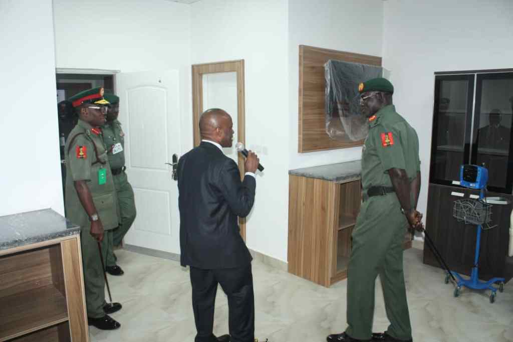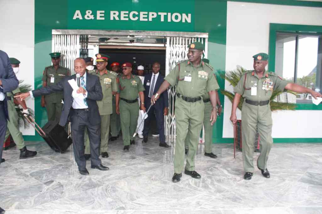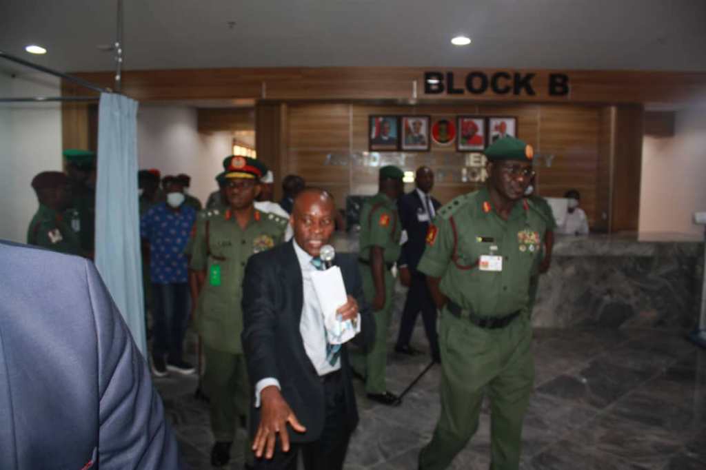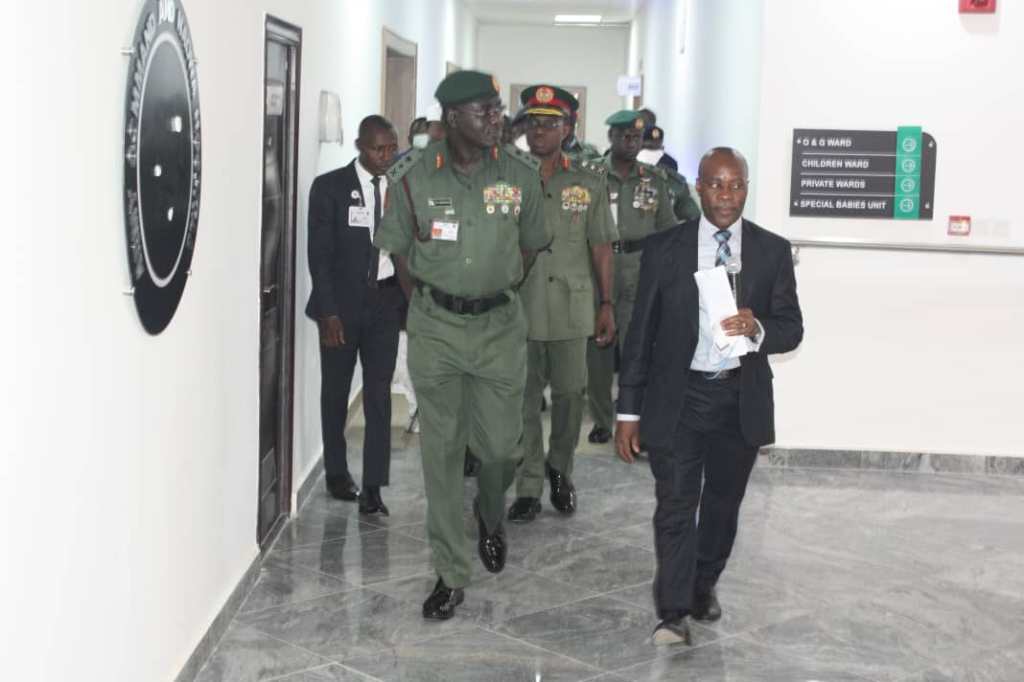Among officials of the hospital on ground to conduct the COAS on tour of the facility was Brig- Gen (Mrs.) SW Aliu (rtd) who was head of the supervising team for the construction of the hospital. She also doubles as the Director of Administration.