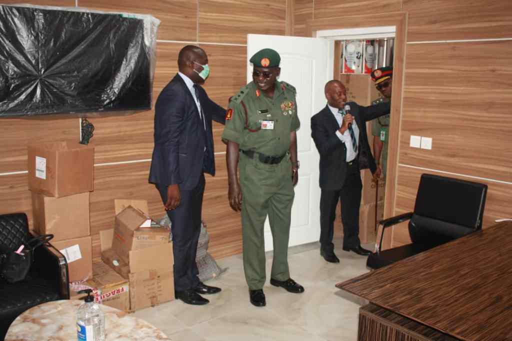 Principal Staff Officers of Army headquarters who accompanied the COAS on the facility tour and inauguration include the Chief of Policy and Plans, Lt. Gen. LO Adeosun, the Chief of Logistics, Major General Unuigbe, Chief of Administration, Major General MS Yusuf, Chief of Standards and Evaluation, Major General Fidelis Azinta, Chief of Accounts and Budget, Major General Bakare, Chief of Civil-Military Affairs, Major General US Mohammed, Director of Audit, Major General Adesope, Military Secretary, Army, Major General Ochigbano and Acting Provost Marshal, Nigerian Army, Brig-General H Ahmed.