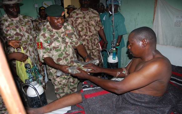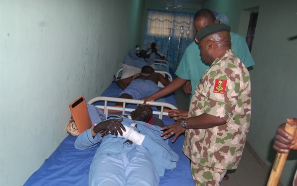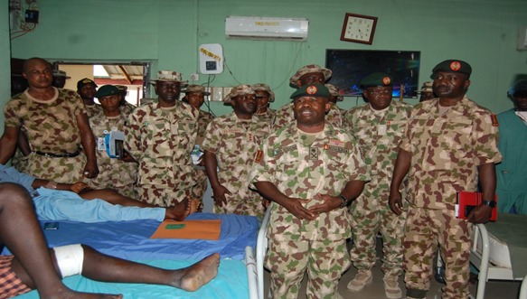 On his return to Maiduguri at about 4:10 pm on the same day, the Chief of Army Staff and his entourage proceeded to the 7 Division Medical Services and Hospital in Maimalari Cantonment to visit the troops who sustained various degrees of injuries during the encounter at Gorgi.
