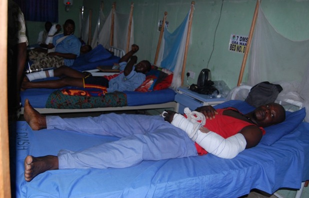 On arrival at the 7 Division Hospital, the Chief of Army Staff was received by the Commander, Colonel Abudu Omogbethai who briefed him on the state of the wounded personel that were admitted at the hospital as a result of the encounter. In his brief, the Commander informed the Chief of Army Staff that a total of 61 troops comprising 7 officers and 32 soldiers who sustained various degrees of injury were currently receiving attention at the hospital.