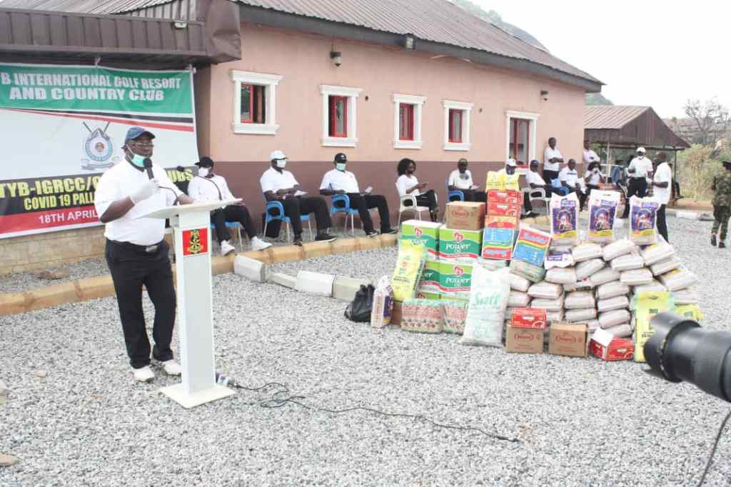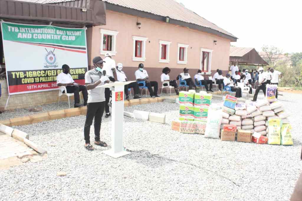 The Lt. Gen Tukur Yusuf Buratai (TYB) International Golf Club in conjunction with the Goodluck Ebele International Golf Club on Saturday 18th April 2020, presented 10 kilogram bag of rice each and other foodstuff among other palliatives to 150 Caddies from both clubs to cushion the negative effects of the COVID 19 pandemic lockdown on their families.