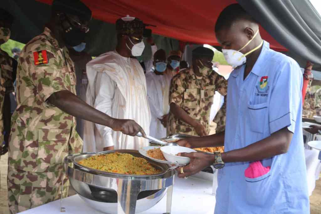 In line with the policy of the Chief of Army Staff (COAS) Lt Gen TY Buratai to ensuring absolute commitment to the welfare of officers and men of the Nigerian Army, especially those in the frontline/Theatre Command Operation LAFIYA DOLE, a befitting Eid-el-Fitr Sallah Luncheon was organized to celebrate Eid-el-Fitr Sallah with troops as a mark of appreciation for their uncommon determination, hardwork, resilience, sacrifices and patriotism in prosecuting the war on Boko Haram/ISWAP’s terrorism in the North East Geo-political zone.