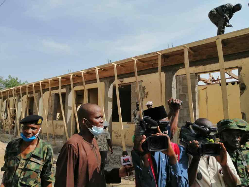 Gen Buratai used the opportunity to assess the living accommodation of some soldiers in Shadawanka Barracks, 33 Brigade Bauchi whose roofs were destroyed by rainstorm on which repairs are already ongoing as seen during the visit to the affected areas.