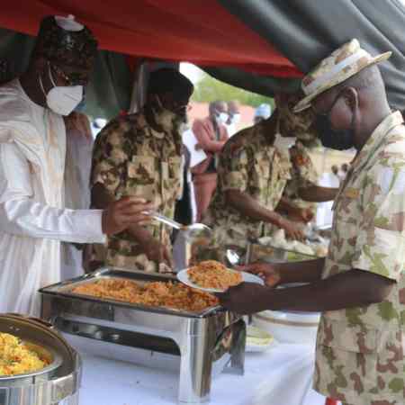 CHIEF OF ARMY STAFF, GOVERNOR BORNO STATE TREAT TROOPS TO A SALLAH LUNCHEON IN MAIMALARI CANTONMENT MAIDUGURI